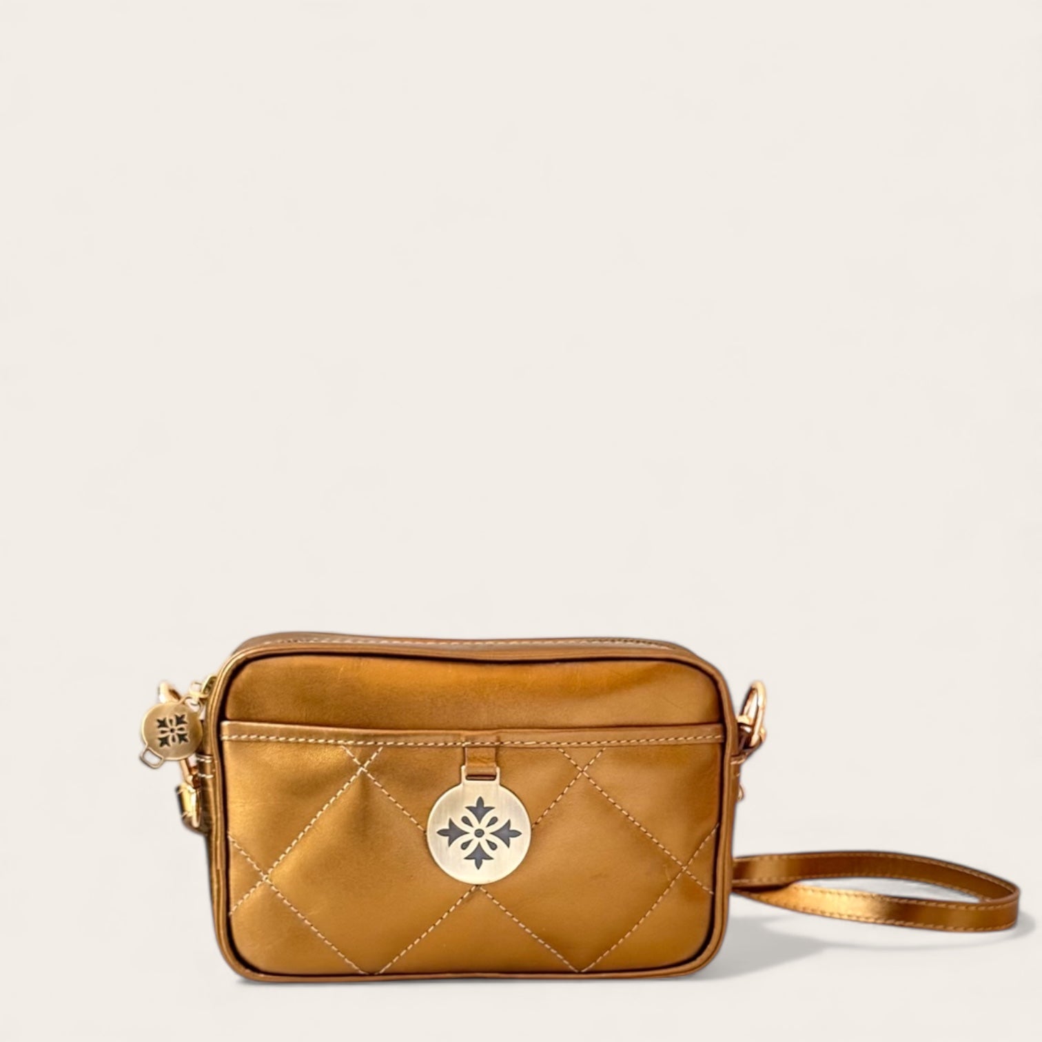 • Herrajes exclusivos en dorado con logo de Carola Guzmán