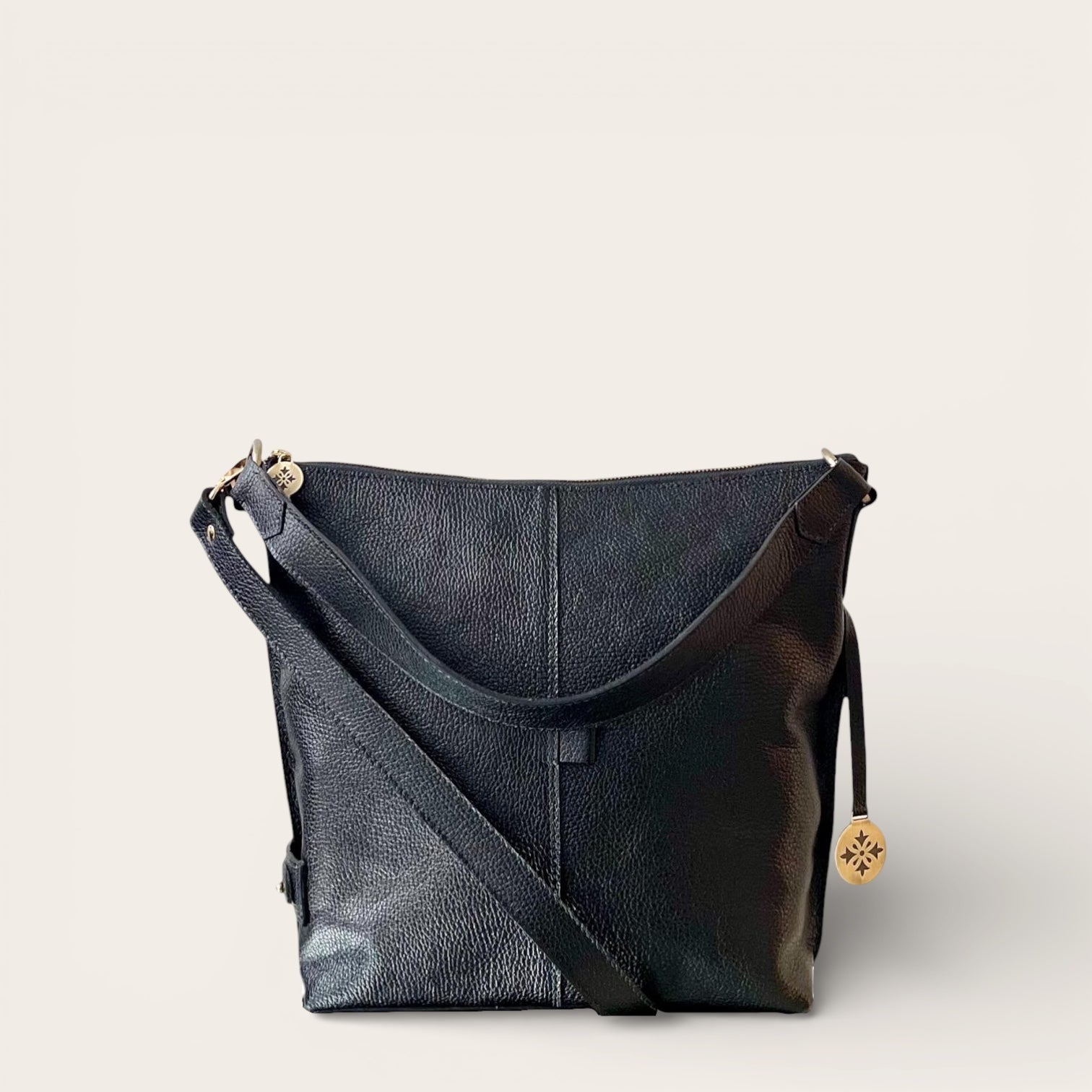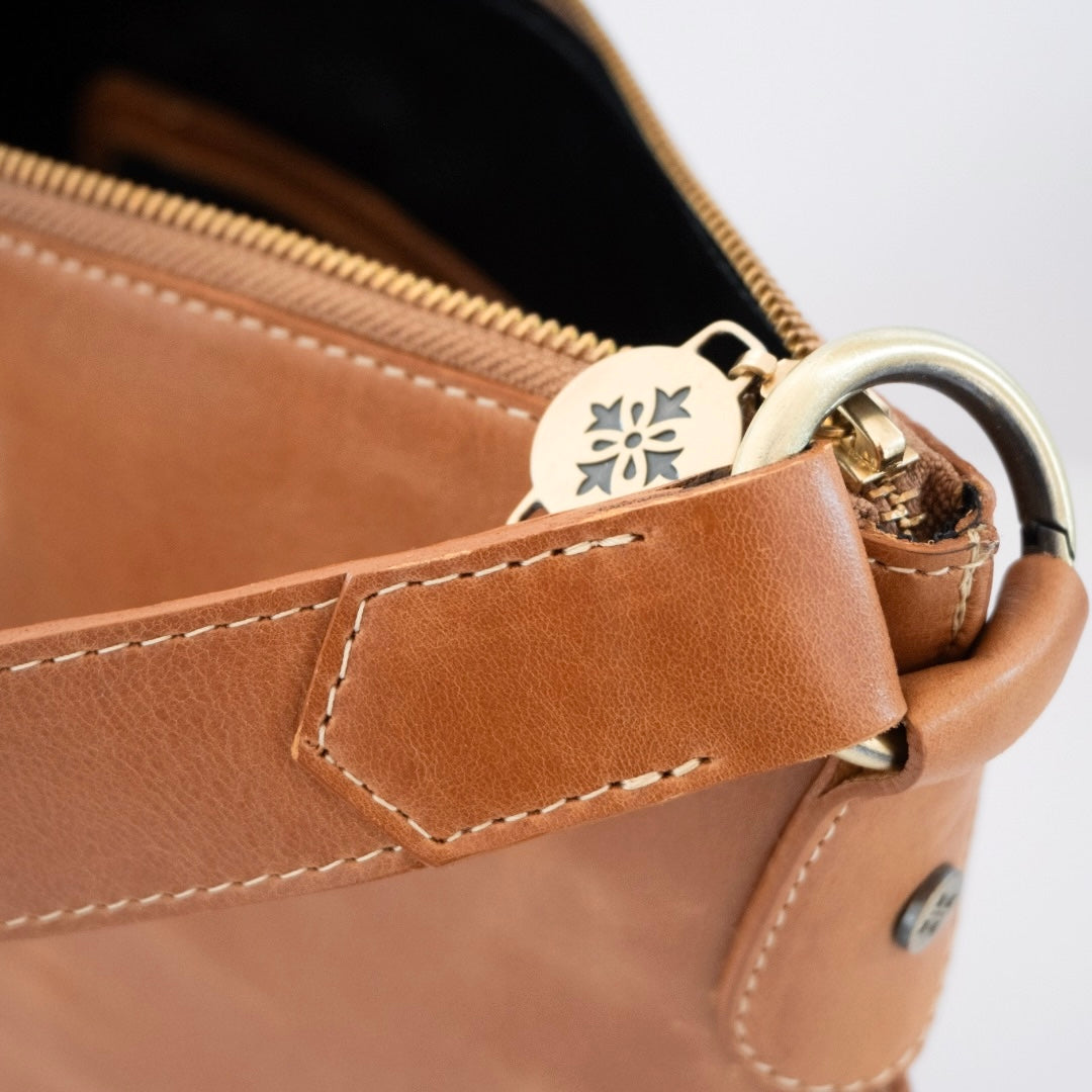 BOLSO MEDIANO DE CUERO NATURAL confeccionado artesanalmente en Chile. Con un diseño atemporal y estilo clásico, ZIPP es elegancia funcional y comodidad liviana.